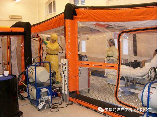 快速安装,便于拆卸,将危险有效隔离在医院主服务区以外。可用于作为SARS、埃博拉、流感等传染性疾病暴发时医院外的紧急隔离病房,模块化设计,内薄膜可更换,内部可分成洗消区、更衣室、起居室三个部分。