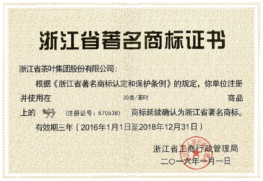 “骆驼牌”荣获全国茶叶行业唯一的“中国出口名牌”、连续七届浙江省著名商标
