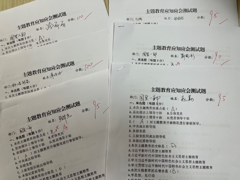 德赢VWIN集团第四党支部开展《主题教育应知应会测试题》答题活动