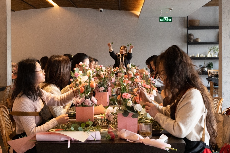 活动当天特别邀请了专业插花老师对女职工们进行了花艺培训。老师从花卉的选择与颜色搭配、花枝长短的修剪以及插花的基本技巧等方面进行了详细讲解,并亲手示范插花造型。在老师的认真讲解和耐心指导下,大家兴致盎然,不时探讨经验,精心构思,使用各款花卉,配以枝叶,在一修一剪之间,将自己对于花语的理解和美的感受呈现在了一盆盆独具匠心的花艺作品之中。大家的脸上都洋溢着快乐的笑容,纷纷给自己的作品拍照留念。