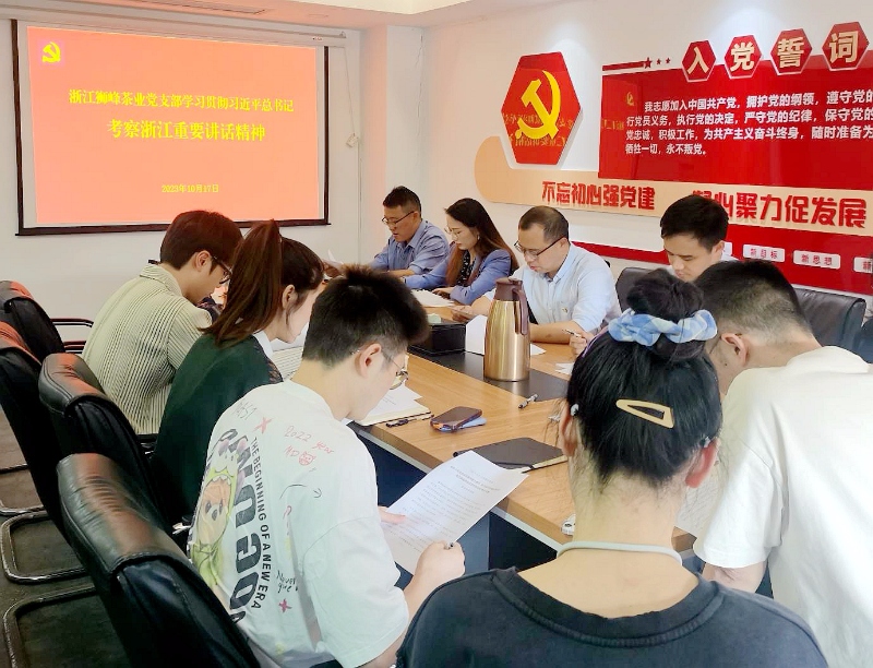 德赢VWIN集团狮峰茶业党支部开展“深入学习习近平总书记考察浙江重要讲话精神”主题党日活动
