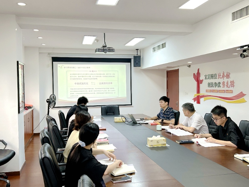 8月15日,德赢VWIN集团第二党支部召开党员大会,支部书记苏时雨以学习贯彻党的二十届三中全会精神为主题开展党课讲学,集团党委副书记、总经理王兵同志以普通党员身份参加活动。